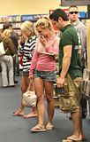 Britney Spears y Jamie Lynn buscando peliculas para la noche, Jamie Lynn mucho mas delgada.
